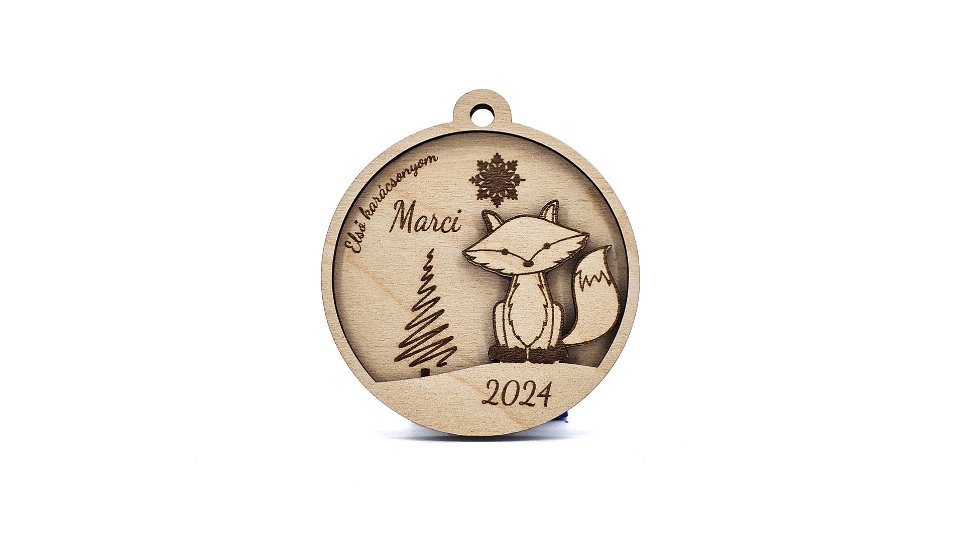 Egyedi, természetes hangulatú karácsonyfadísz kisgyermekek első karácsonyára. A kedves rókás motívum és a névre szóló felirat szívhez szóló emlékké teszi az ünnepet. Tökéletes választás kisbabák, unokák vagy keresztgyermekek számára.