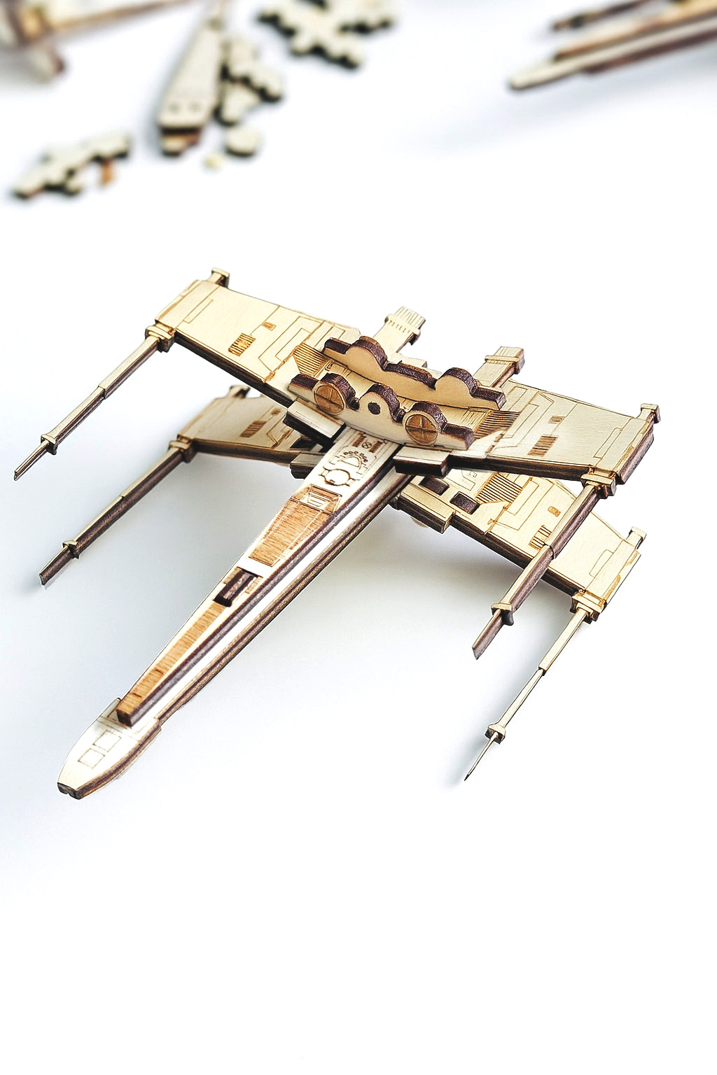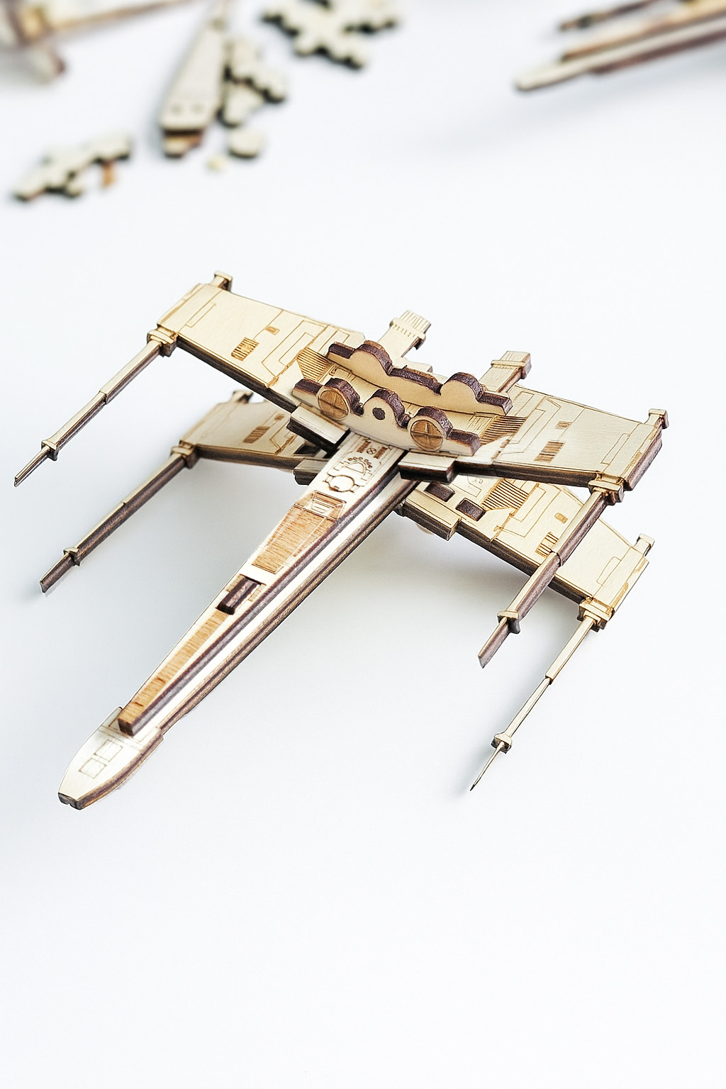 Egyedi, kreatív karácsonyfadísz a sci-fi és modellezés rajongóinak. A legendás X-Wing űrhajó stílusában készült dísz 3 mm-es rétegelt lemezből állítható össze, ragasztás nélkül, precíz lézervágással és részletgazdag gravírozással.